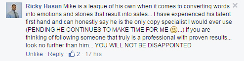 When you work with me you get a 100% money-back guarantee with each and every piece of copy that I write for you. Do you know of any other copywriter who offers a guarantee like that?